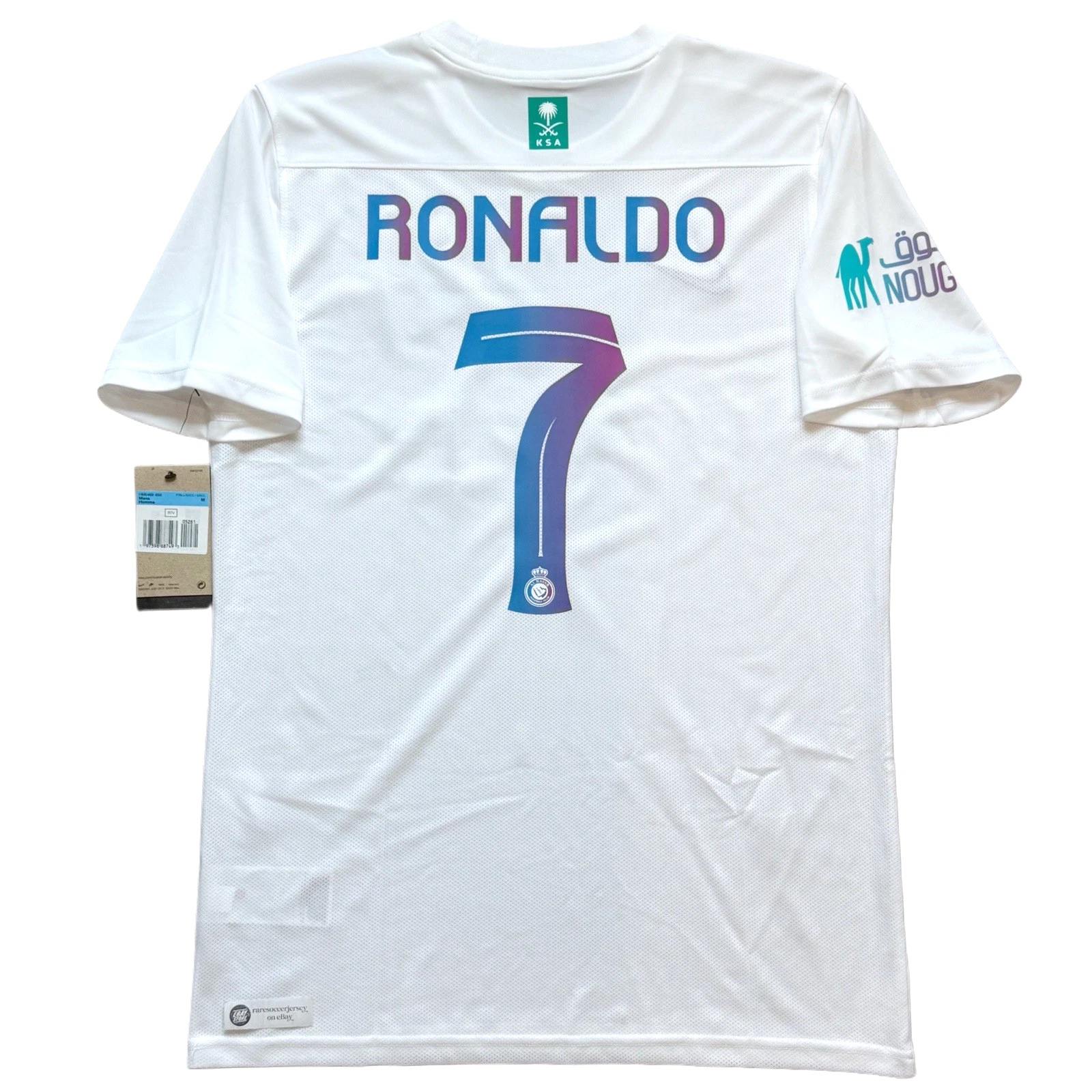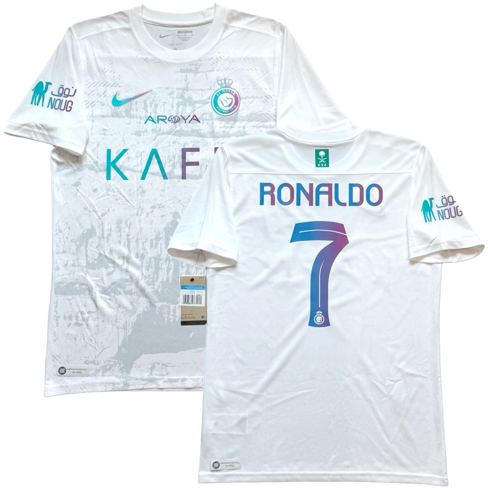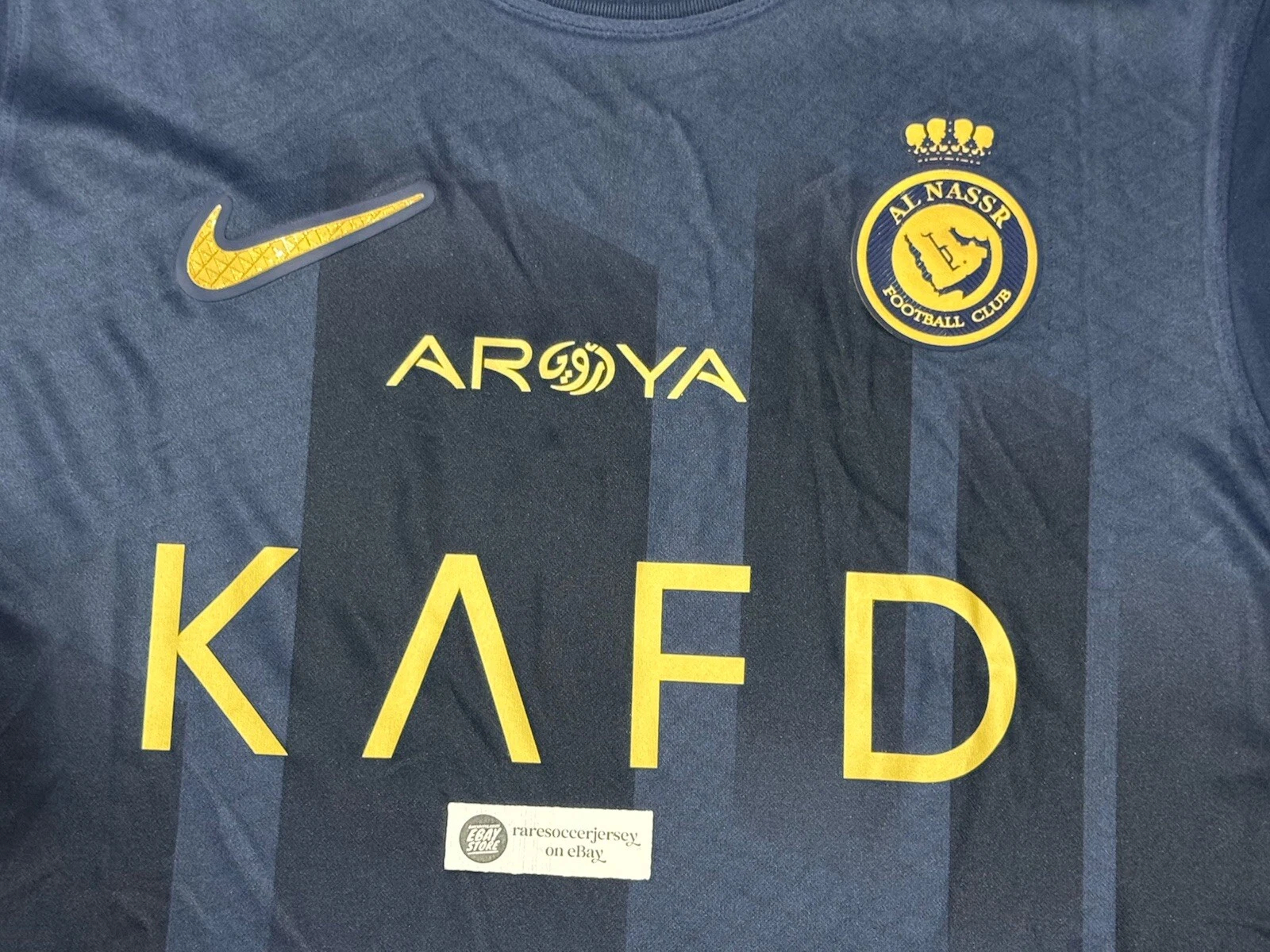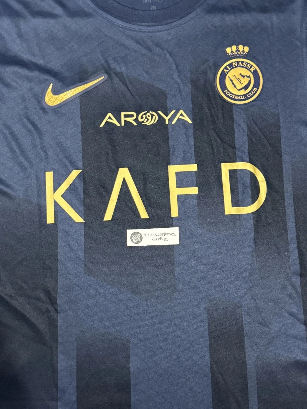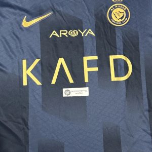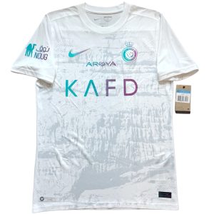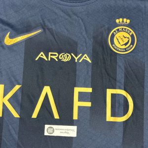Away jersey as worn when the side led by Cristiano Ronaldo, finished 2nd in the Saudi Pro League and reached the quarter-finals of the AFC Champions League. Ronaldo bagged 50 goals in all competitions. with advise of Cristiano, club switched to Nike from in-house kit brand “DENEUS”